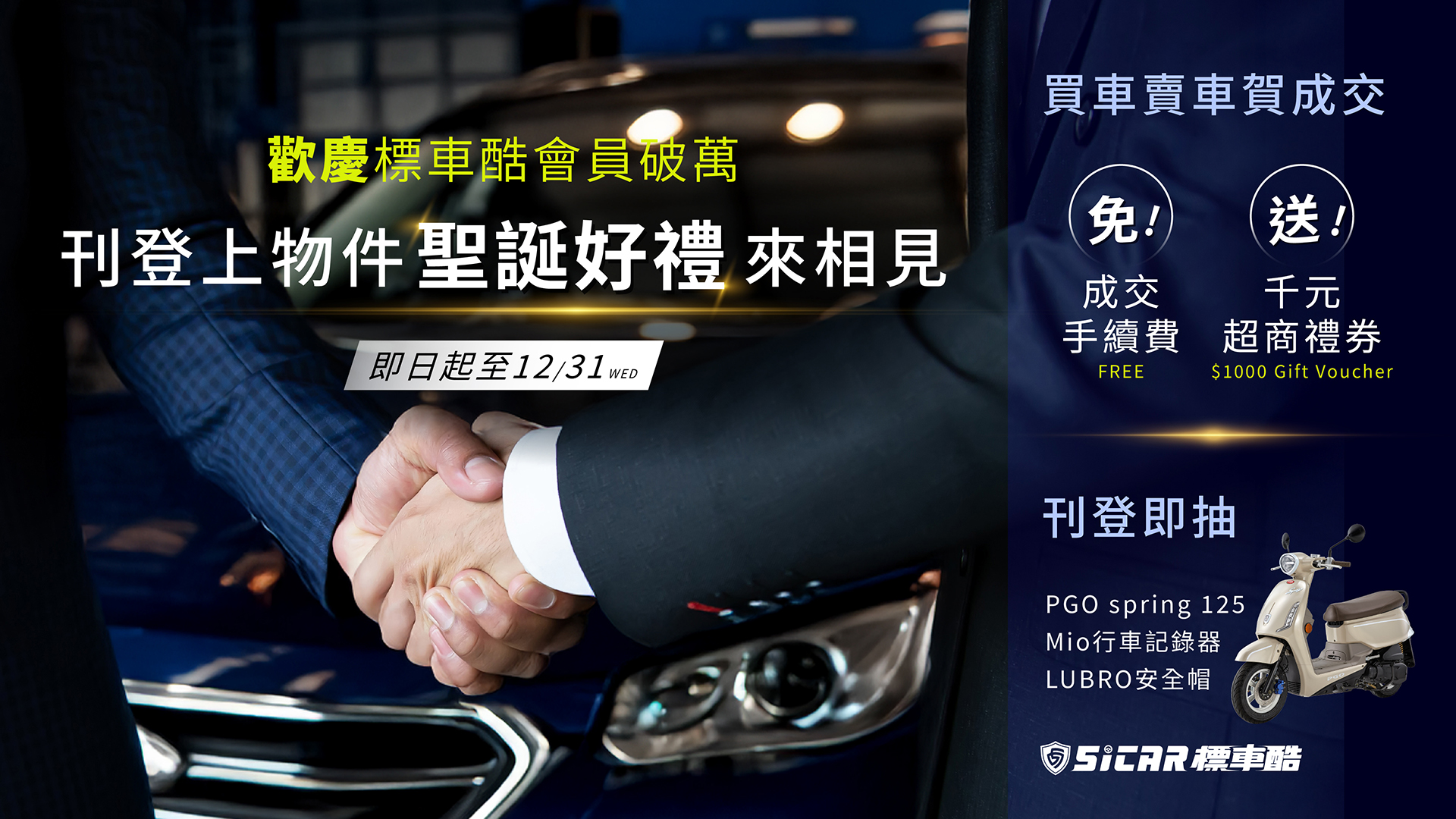 - 活動期間於標車酷上刊登物件(汽車、機車均可)成功,並於 12/31 當日物件仍未下架者,得符合抽獎資格